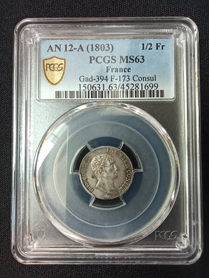 France : Demi Franc Napoleon Premier Consul An 12 A ; PCGS : MS 63