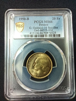 20 Francs G.Guiraud 1950 B 4 Faucilles ; PCGS : MS 66
