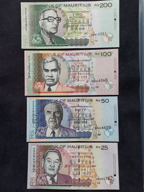 Ile Maurice : Série 200 / 100 / 50 / 25 Rupees 2006 - 2009 NEUF / UNC (Ref 434)