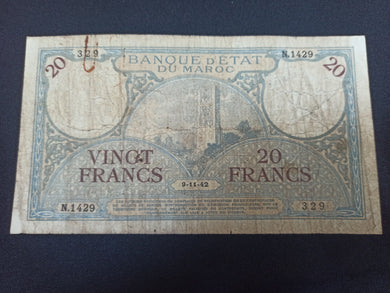 Maroc : 20 Francs 1942 (Ref 3024)