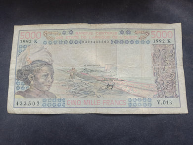 Afrique de l'Ouest : 5000 Francs 1992 K (Ref 3168)