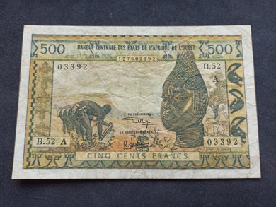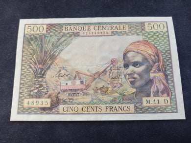 Afrique de l'Ouest : Côte d'Ivoire : 500 Francs (1959-65) A Sign 9 (Ref 1329)
