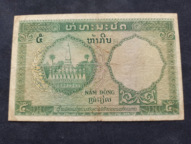 Indochine : 5 Piastres 1953 Laos ; Pick 101 (Ref 2344)