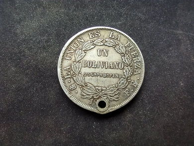 Bolivie : Un Boliviano Argent ; Trouée (Ref 3002)