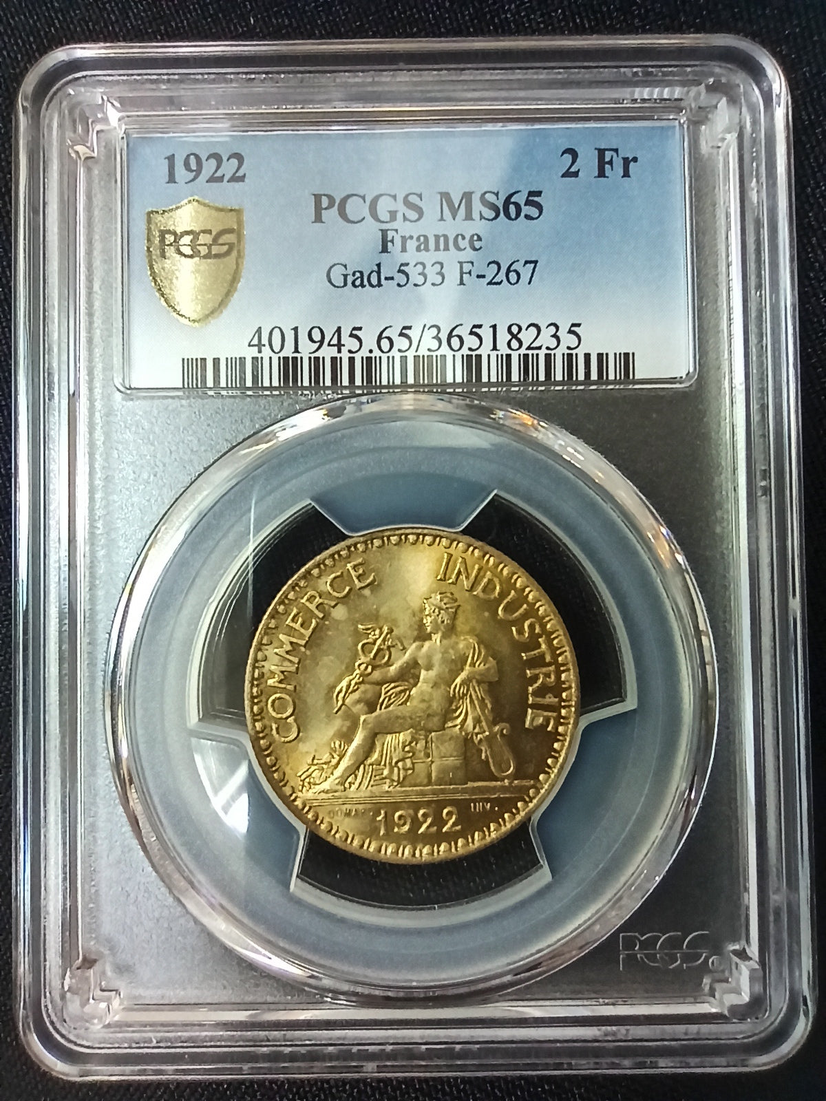 2 Francs Commerce 1923 ; PCGS : MS 65