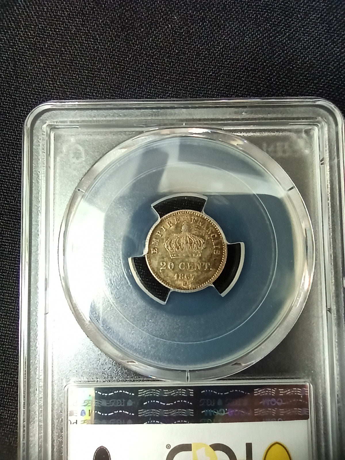 20 Centimes 1867 BB Napoleon III Tête Laurée ; PCGS : MS 64