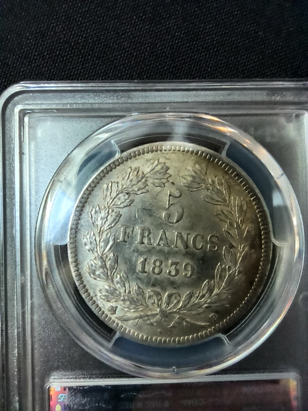 5 Francs Louis Philippe 1839 B ; PCGS : MS 58