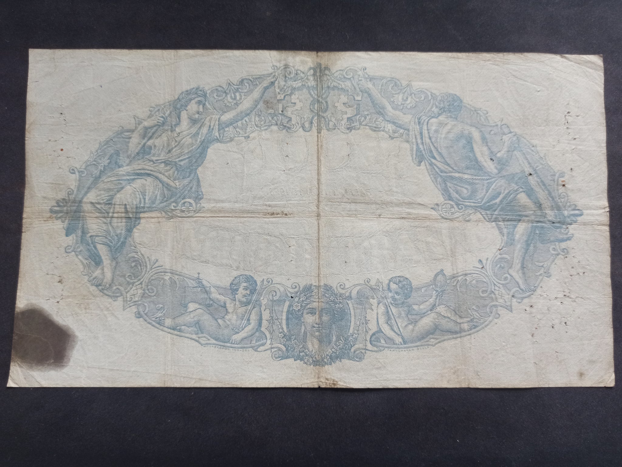 Déchiré / restauré, (transparent, on voit le fond noir sur la photo)