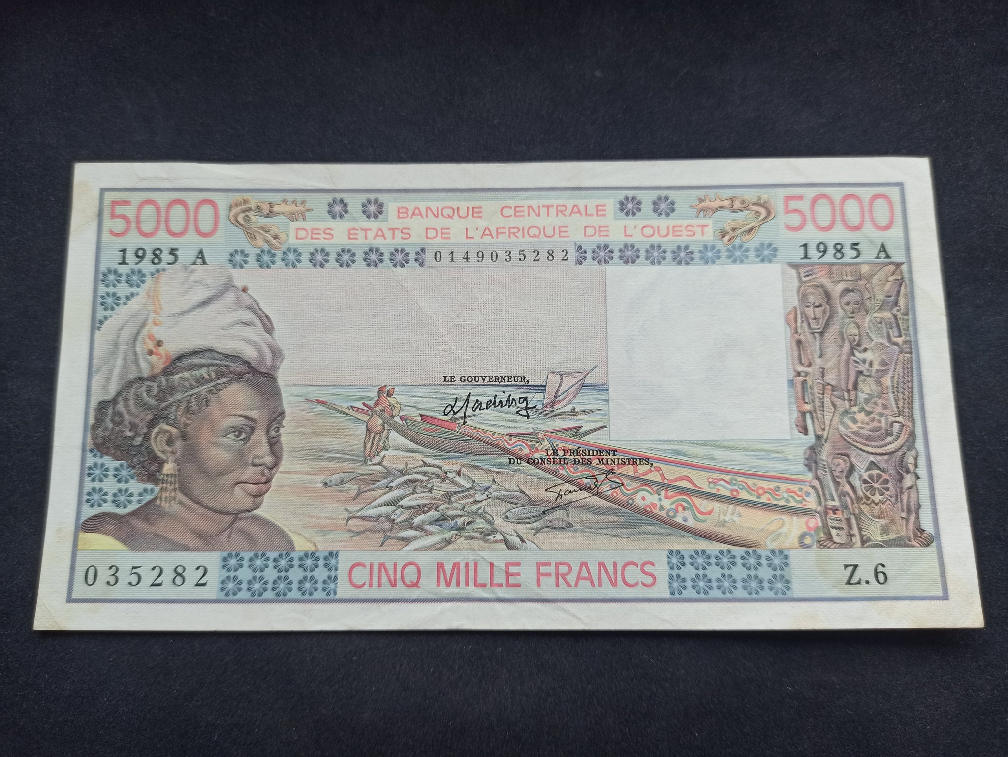 Af de l'Ouest : Côte d'Ivoire 5000 Francs 1985 (Ref 1784)
