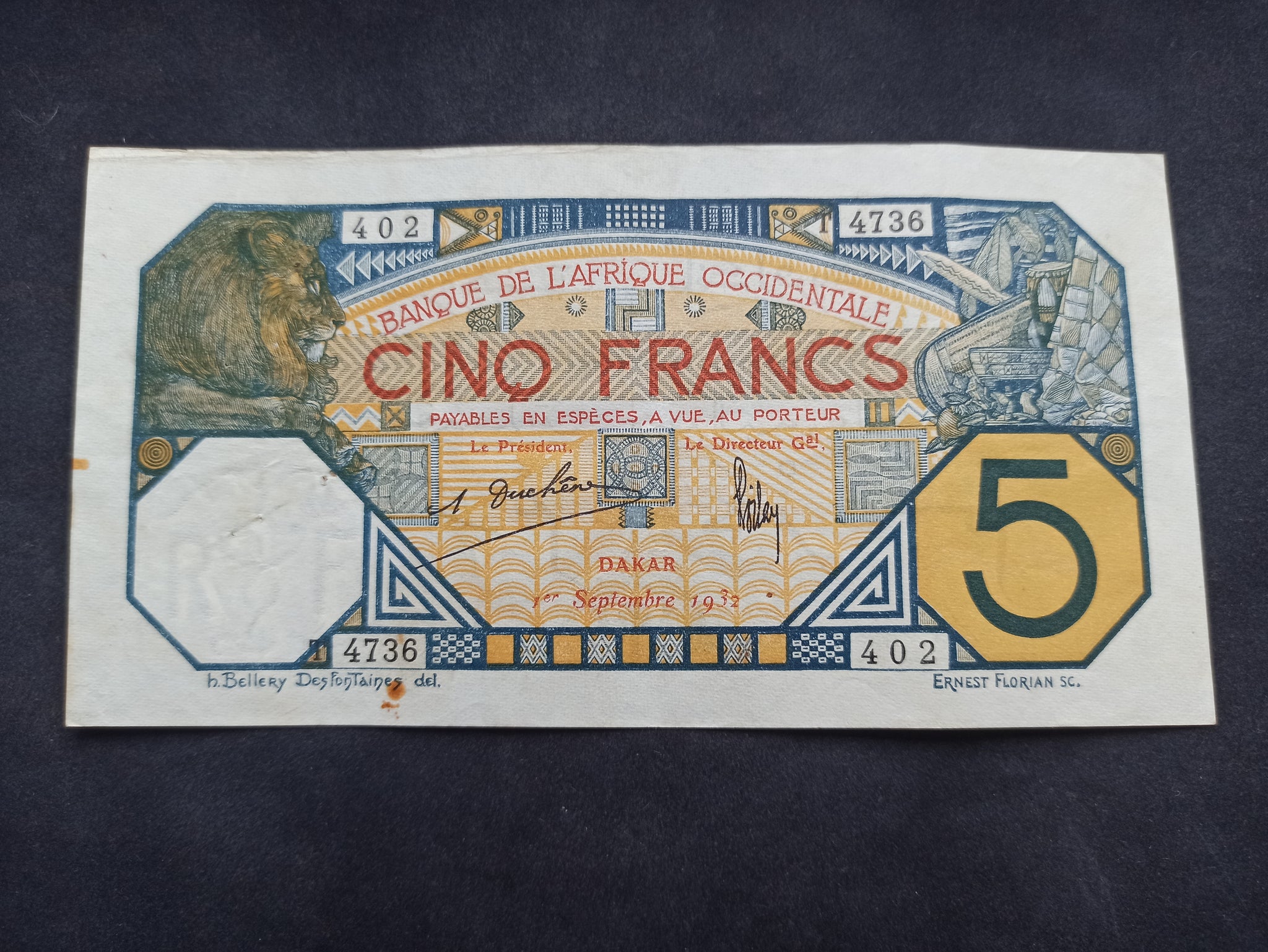 Afrique Occidentale : Dakar : 5 Francs 1932 (Ref 2662)