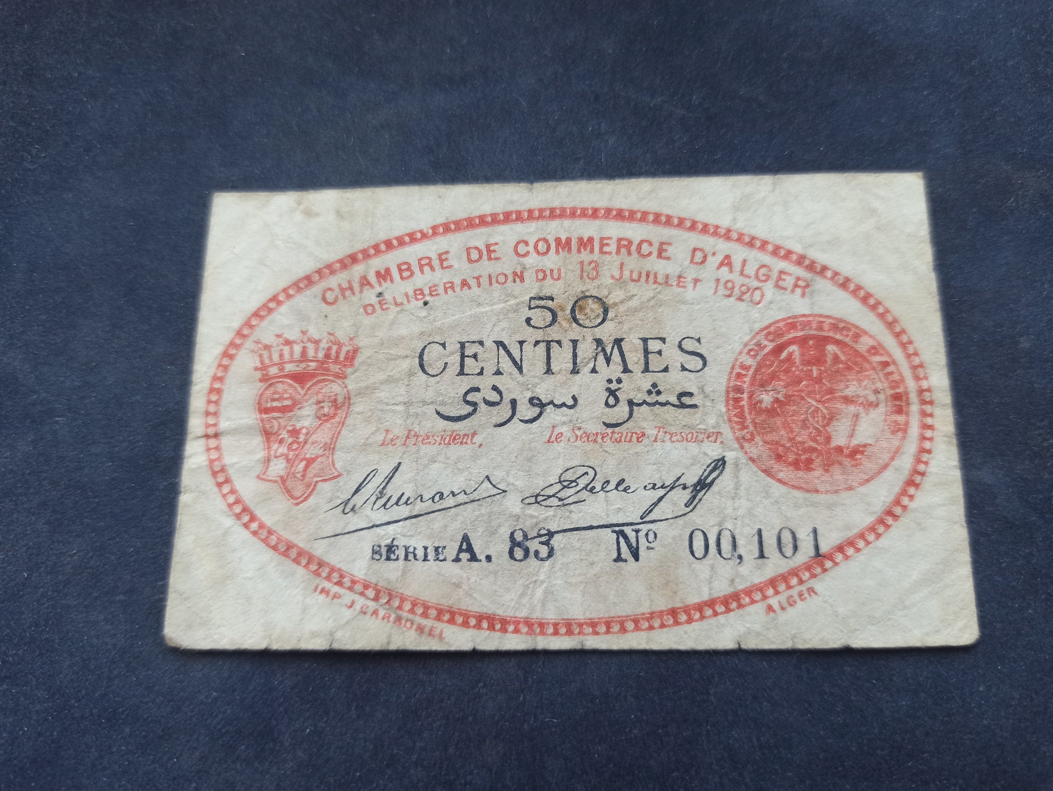 Algérie : 50 Centimes 1920 Alger (Ref 3103)