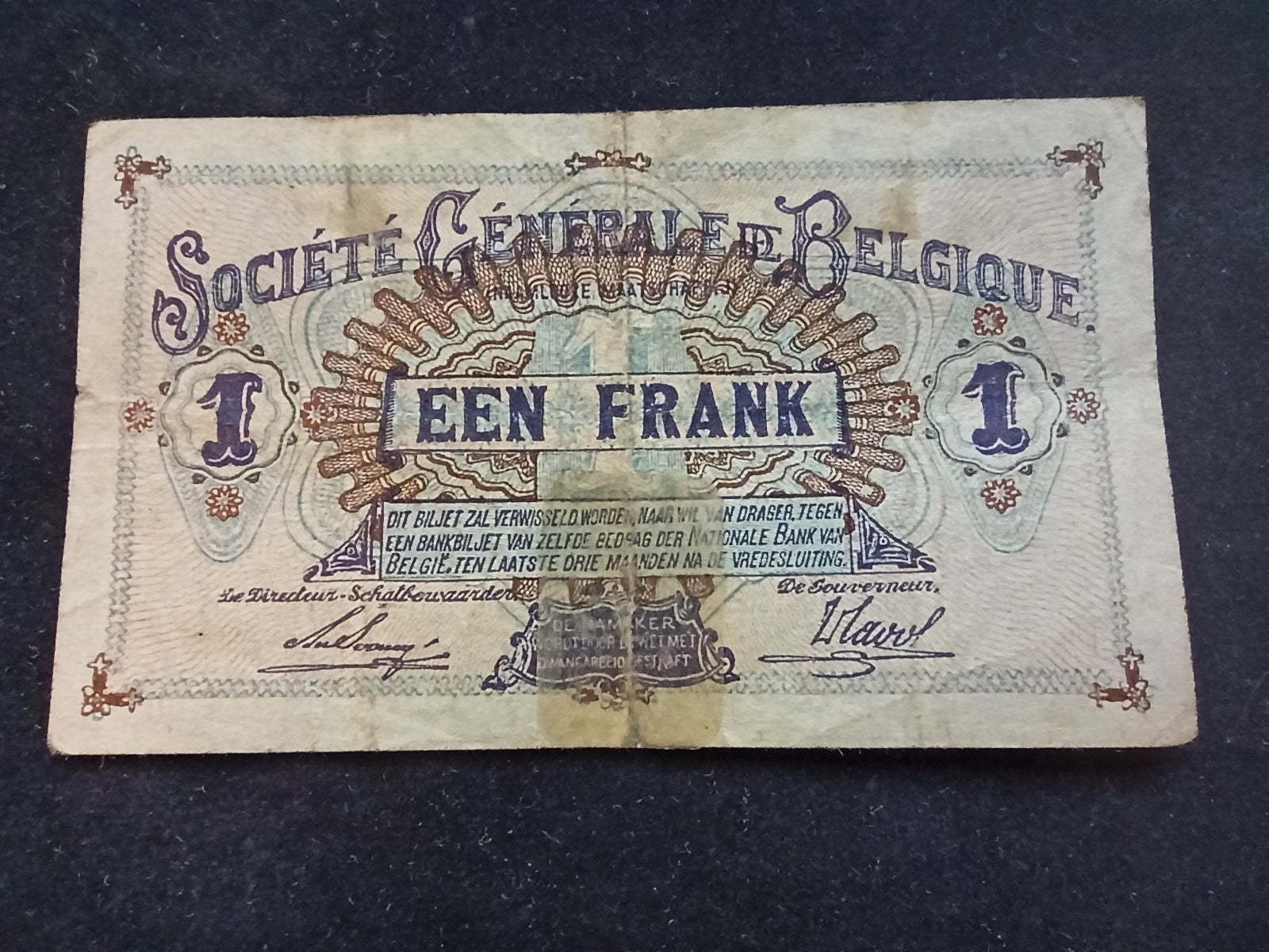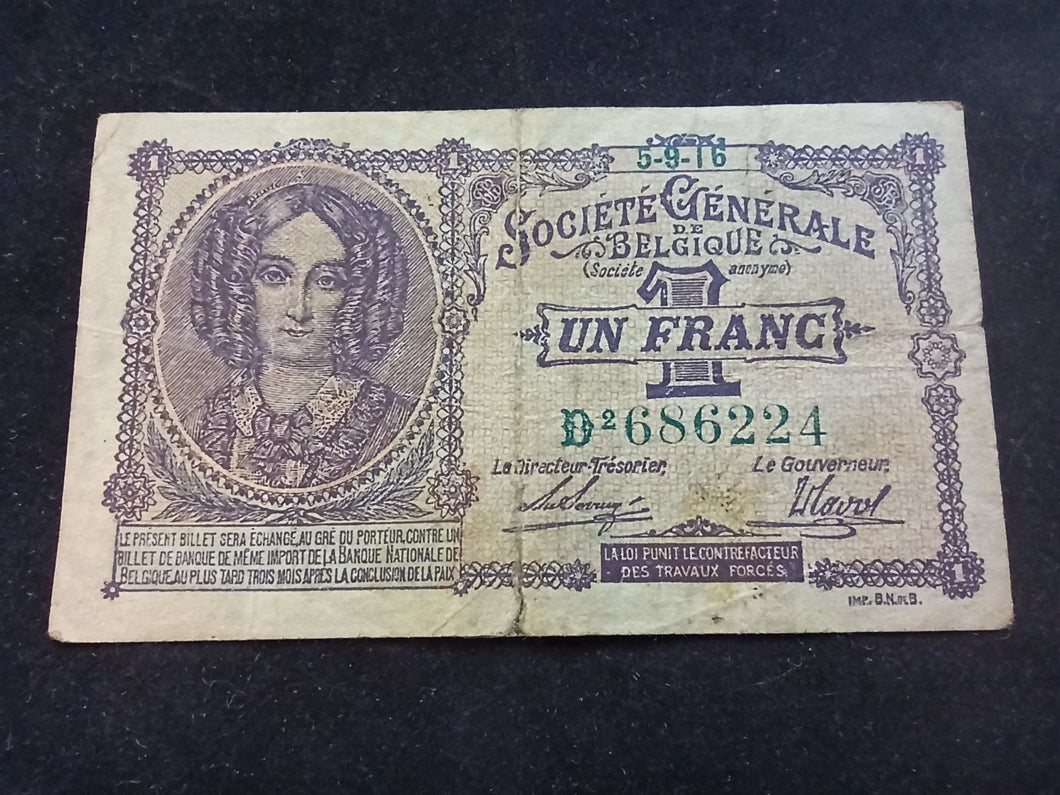 Belgique : 1 / Un Franc 1916 (Ref 1035)