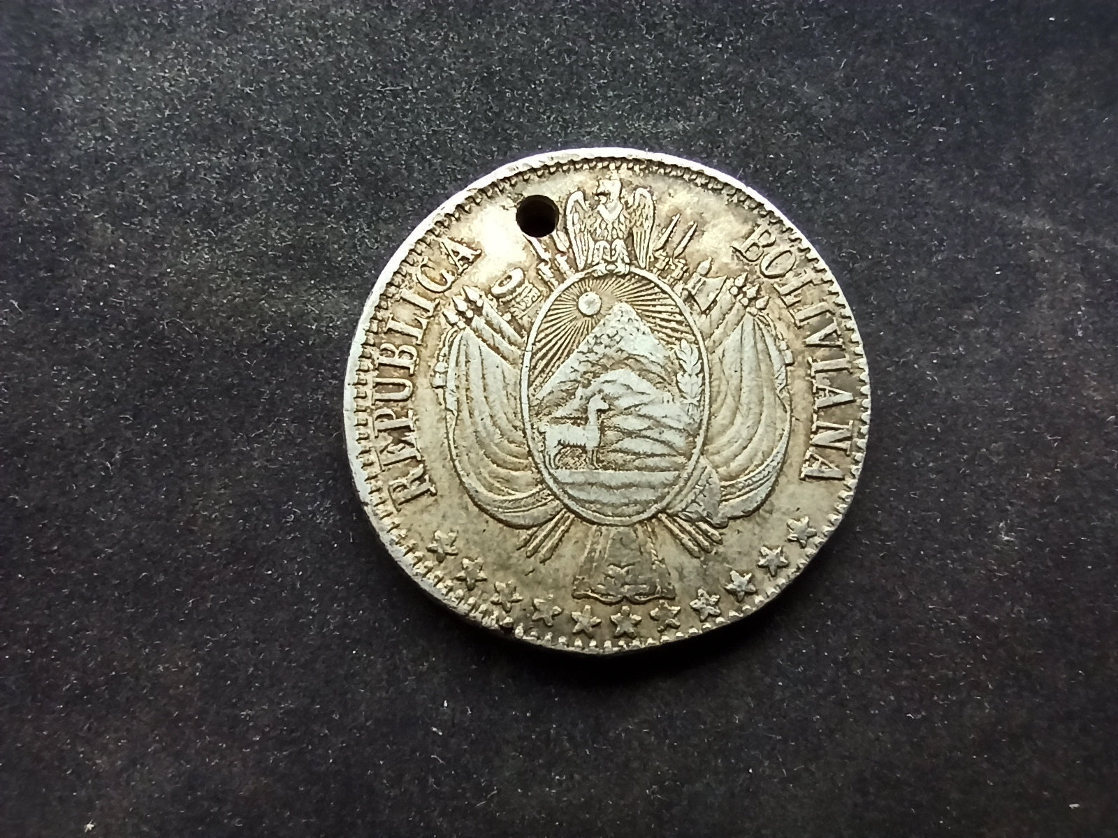 Bolivie : Un Boliviano 1867 Argent ; Trouée (Ref 3004)