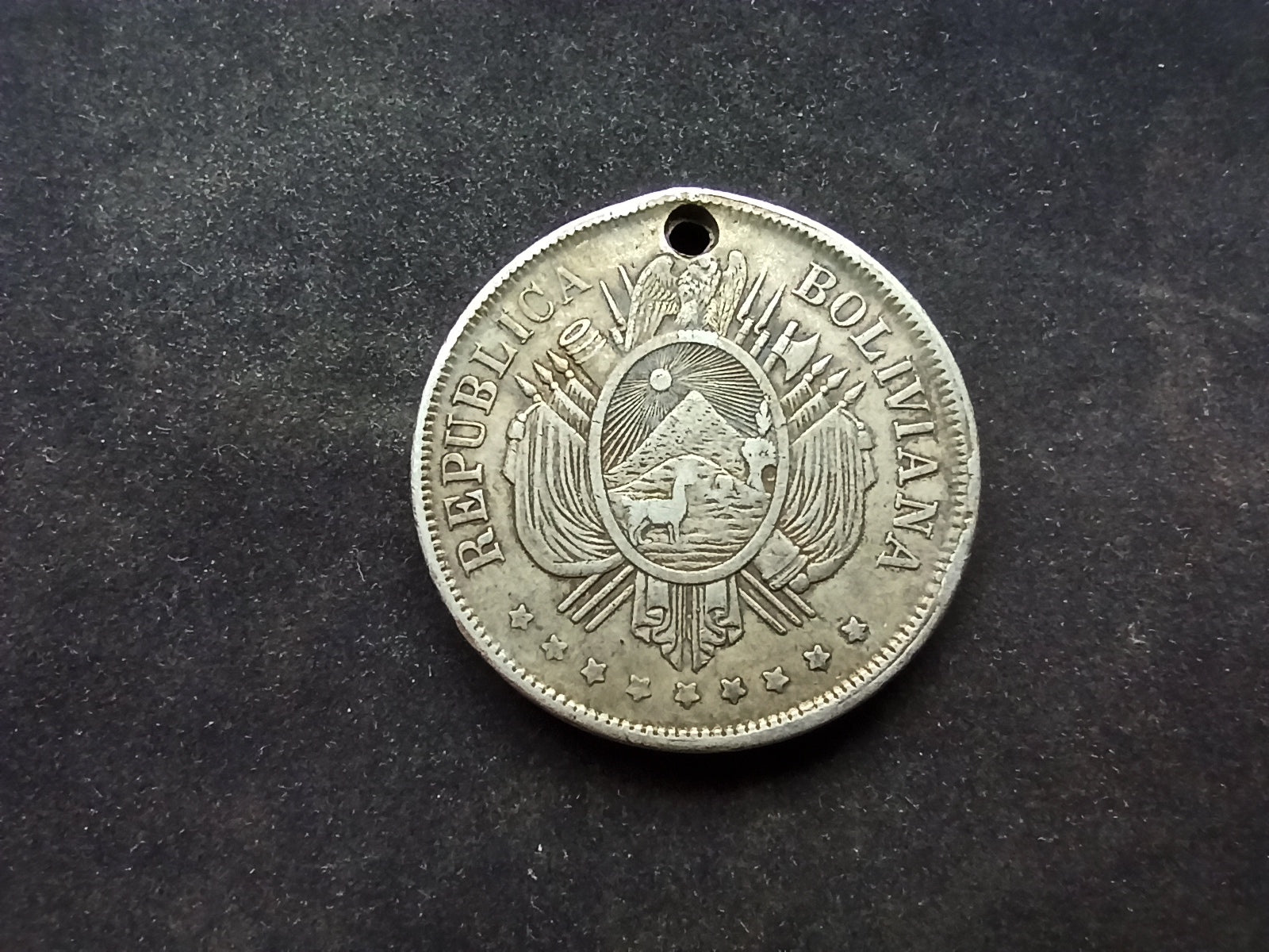 Bolivie : Un Boliviano Argent ; Trouée (Ref 3002)