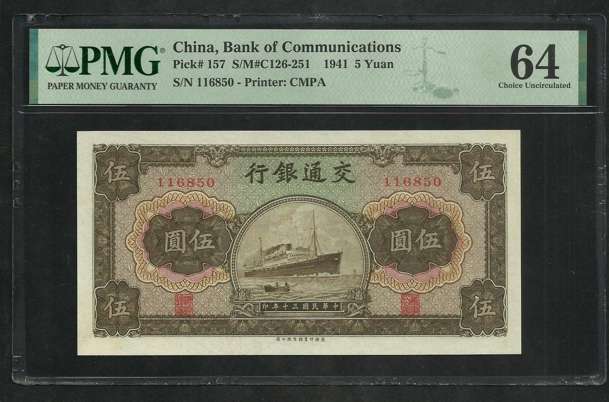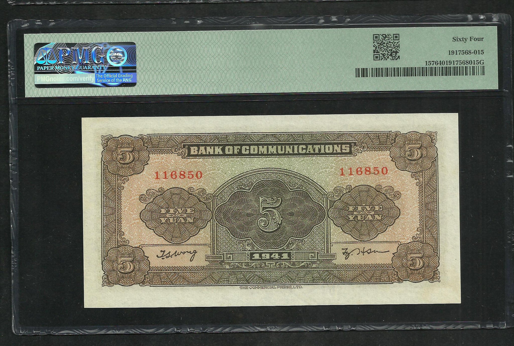 China : 5 Yuan 1941 ; PMG : Choice UNC 64 (Ref 1897)