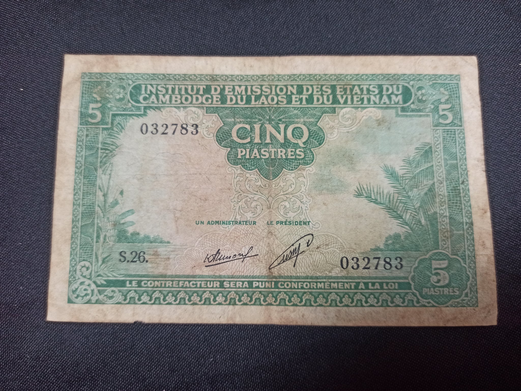 Colonies Françaises : Indochine : 5 Piastres 1953 Laos (Ref 2820)