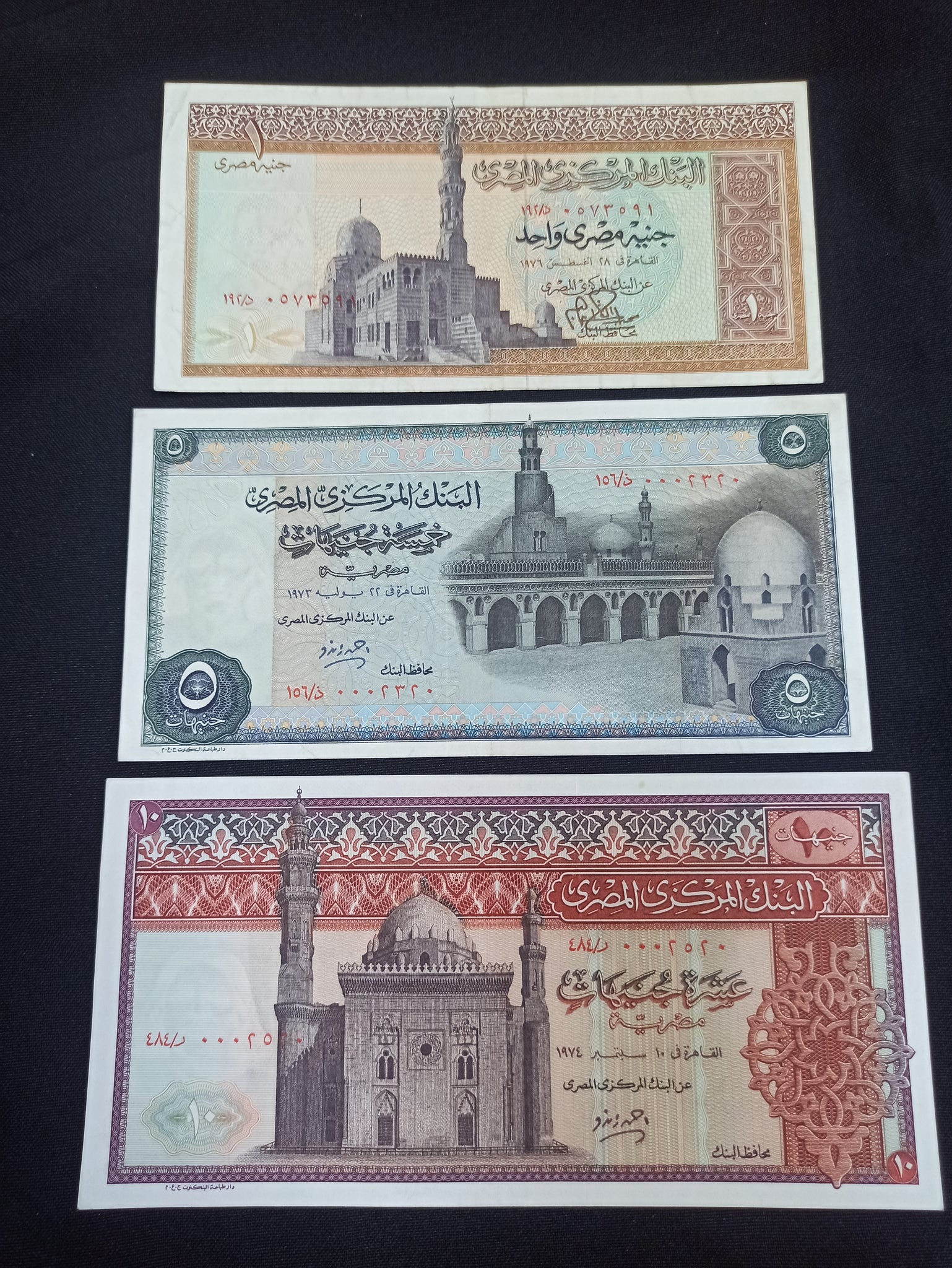 Egypte : Lot de 3 Billets : 1 / 5 / 10 Pounds 1972 - 74 (Ref 3040)