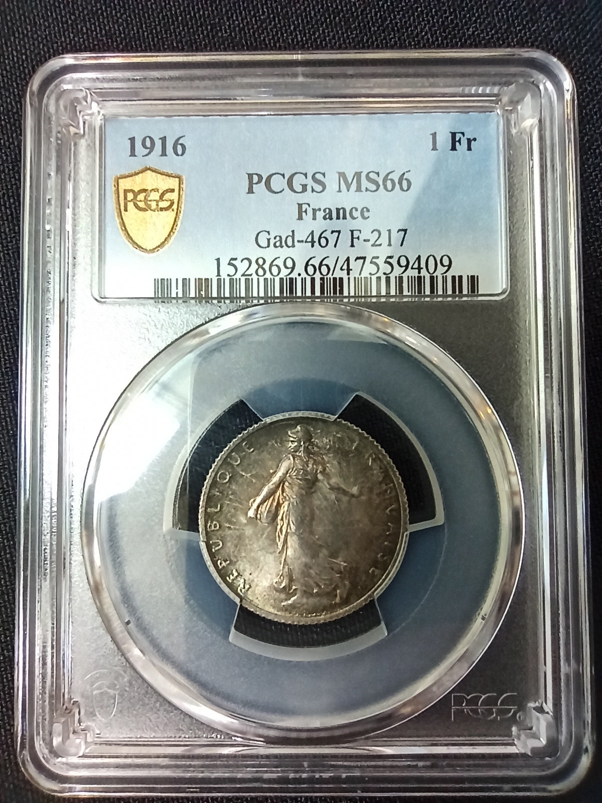 France : 1 Franc Semeuse 1916 ; PCGS : MS 66