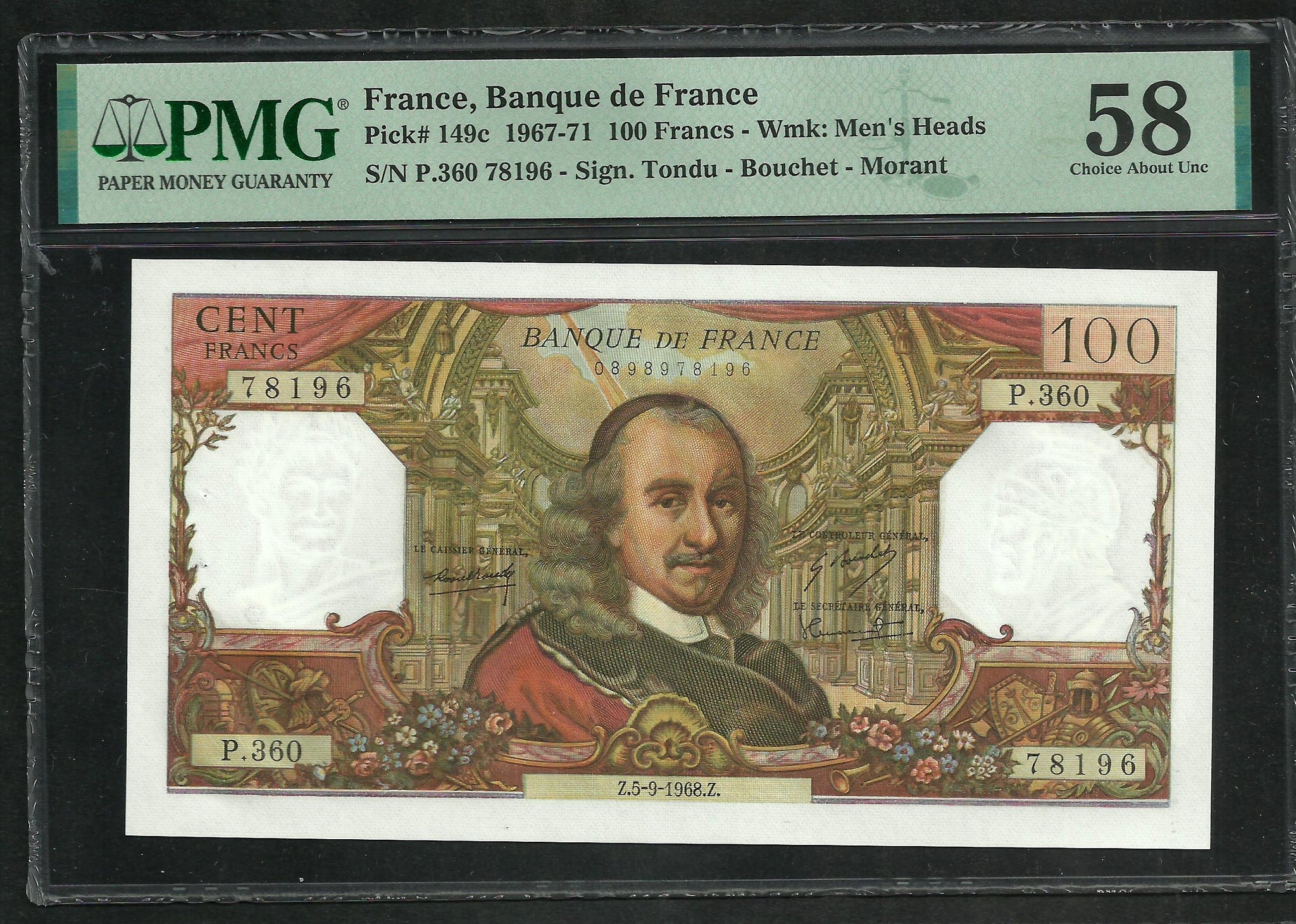 France : 100 Francs Corneille 5-9-1968 ; PMG : Choice About UNC 58 (Ref 1941)
