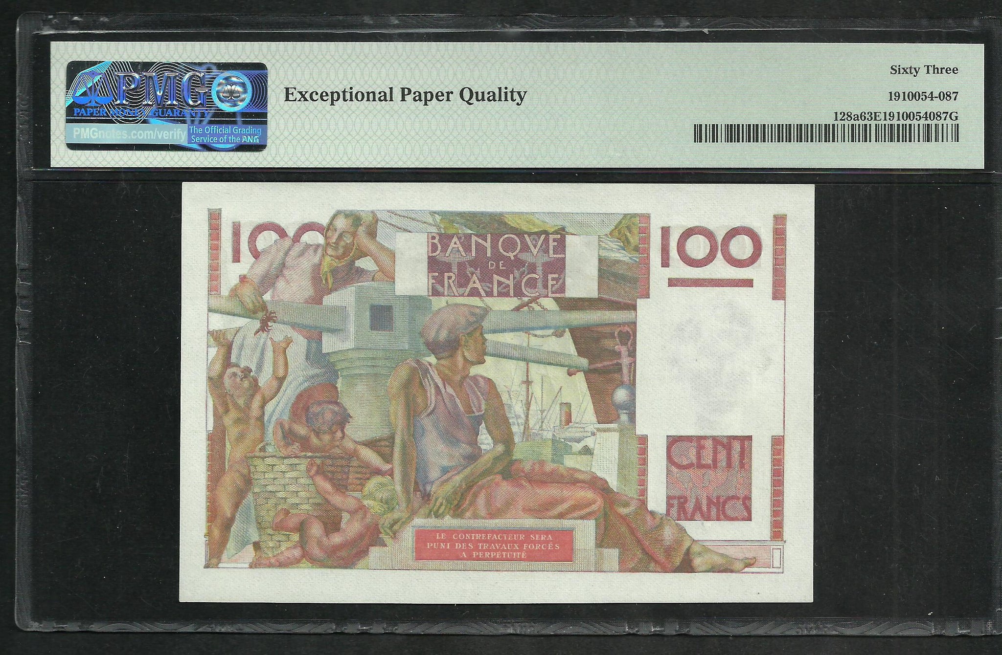 France : 100 Francs Paysan 18-4-1946 ; PMG : Choice UNC 63 ; EPQ (Ref 1940)