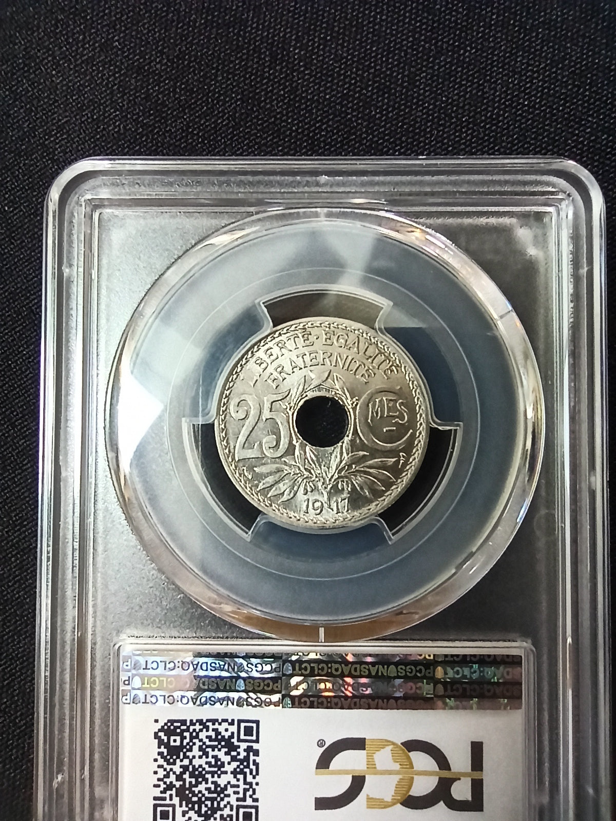 France : 25 Centimes 1917 Souligné Lindauer ; PCGS : MS 64