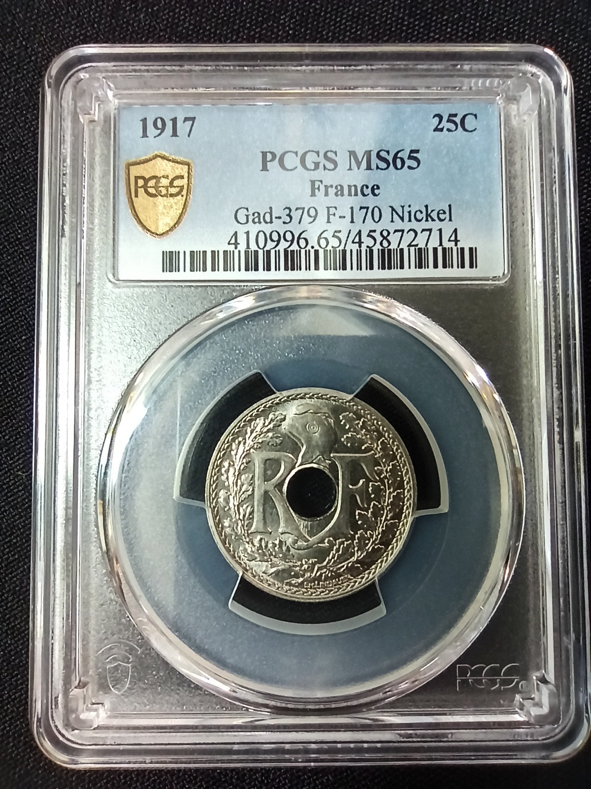 France : 25 Centimes 1917 Souligné Lindauer ; PCGS : MS 65