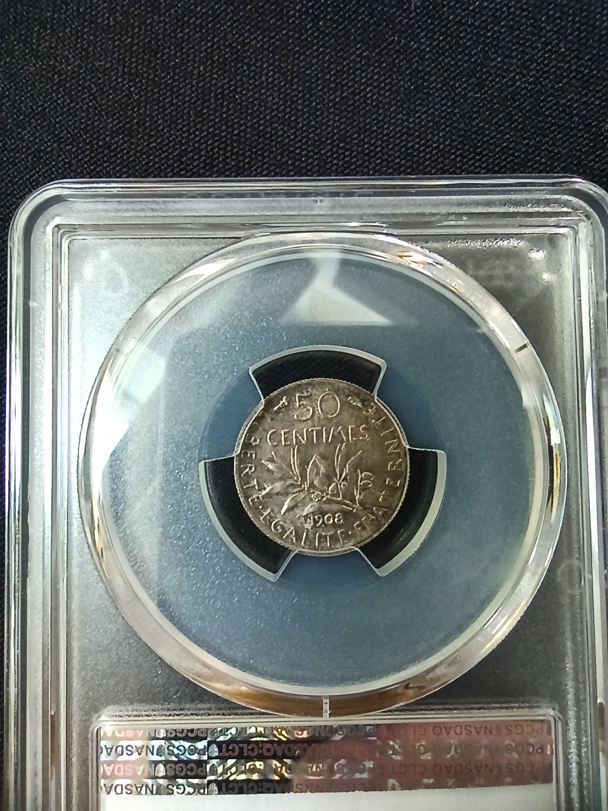 France : 50 Centimes 1908 Semeuse ; PCGS : MS 64