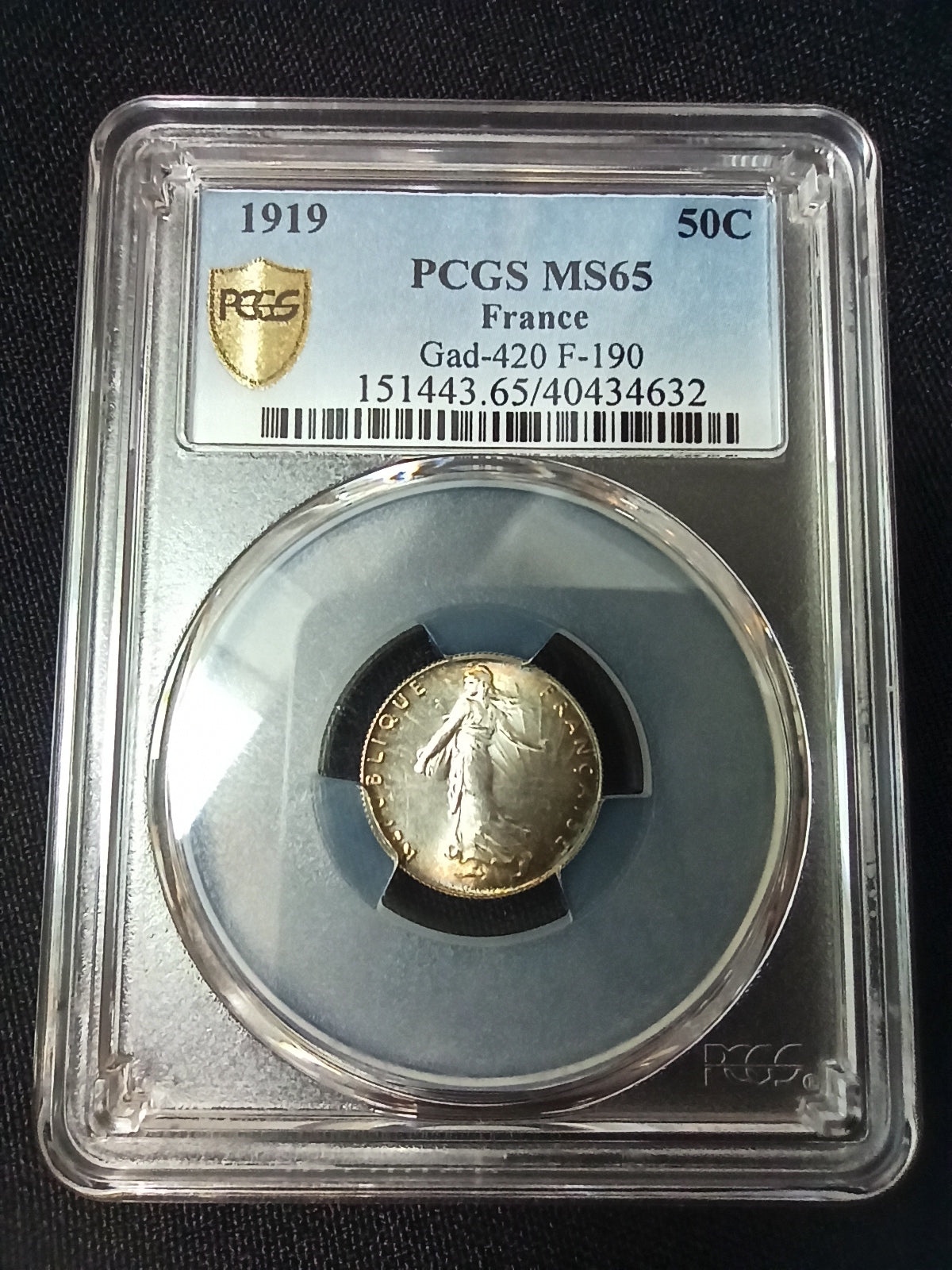 France : 50 Centimes Semeuse 1919 ; PCGS : MS 65