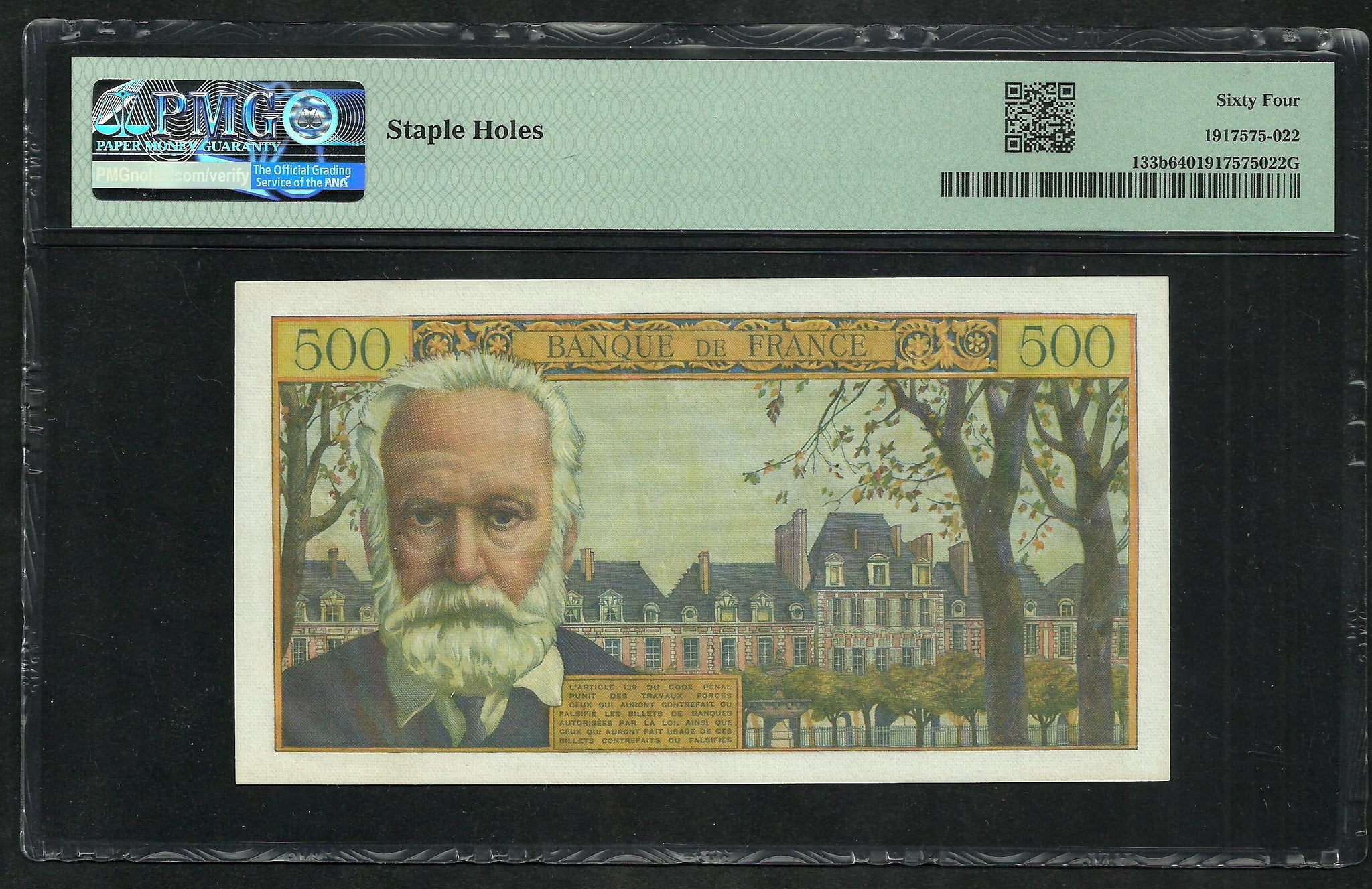 France : 500 Francs Victor Hugo 10-7-1958 ; PMG : Choice UNC 64 (Ref 1950)