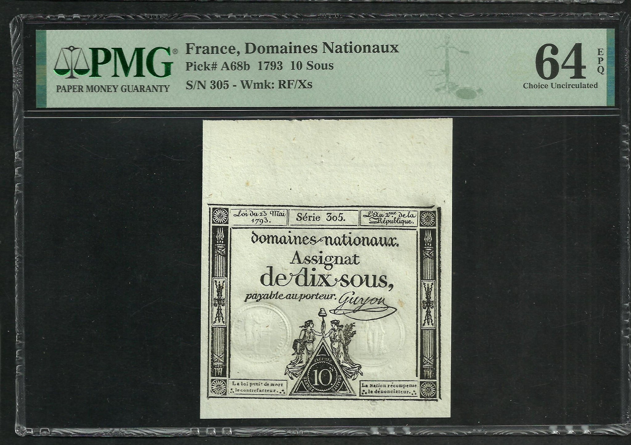 France : Assignat 10 Sous 23-05-1793 ; PMG : Choice UNC 64 ; EPQ (Ref 1976)