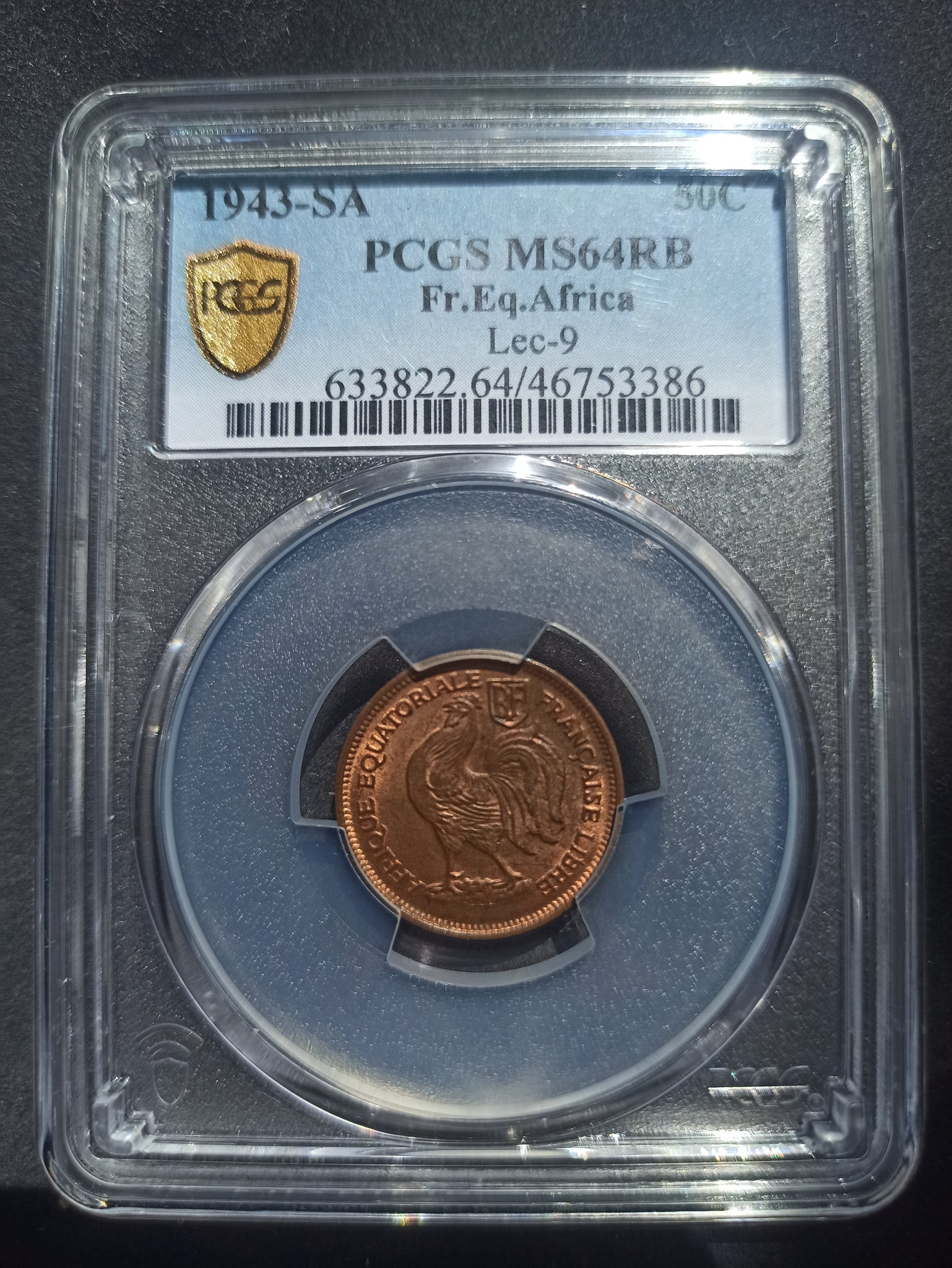 French Equarioral Africa : 50 Cent 1943 ; PCGS : MS 64