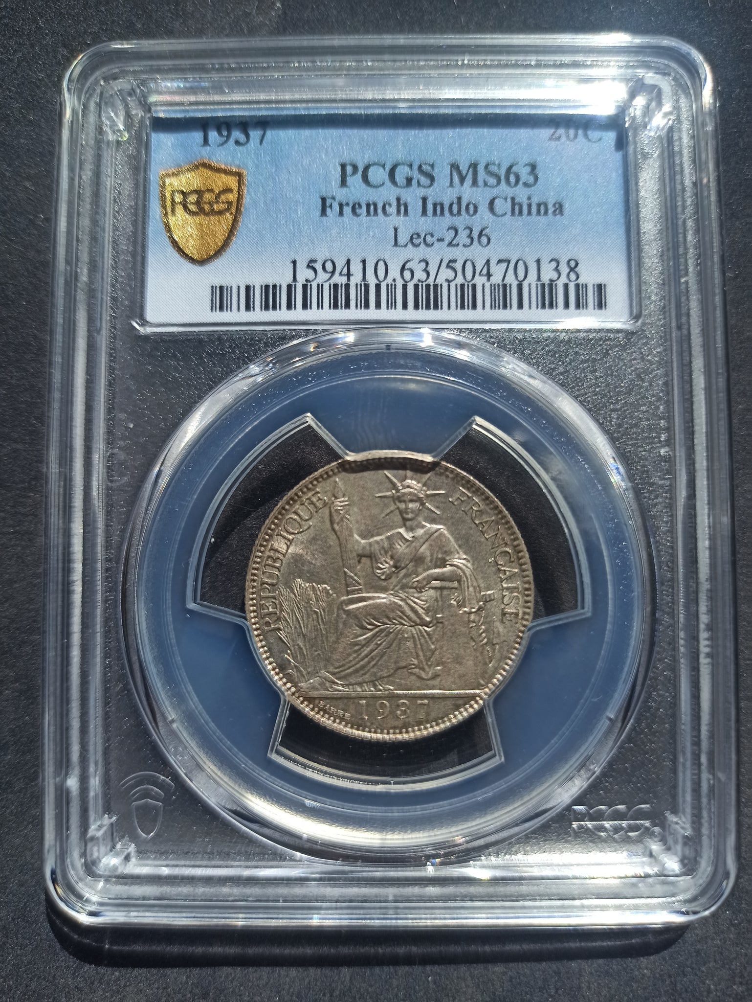 French Indochina : 20 Cents 1937 ; PCGS : MS 63