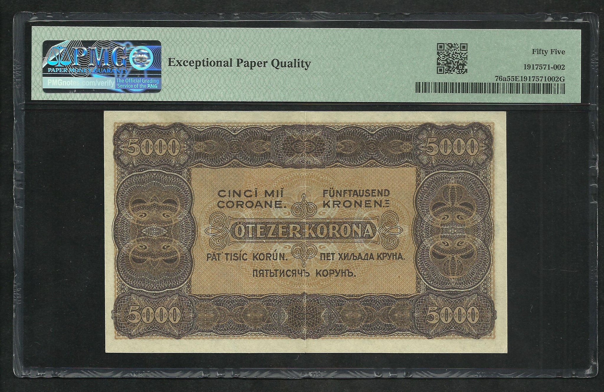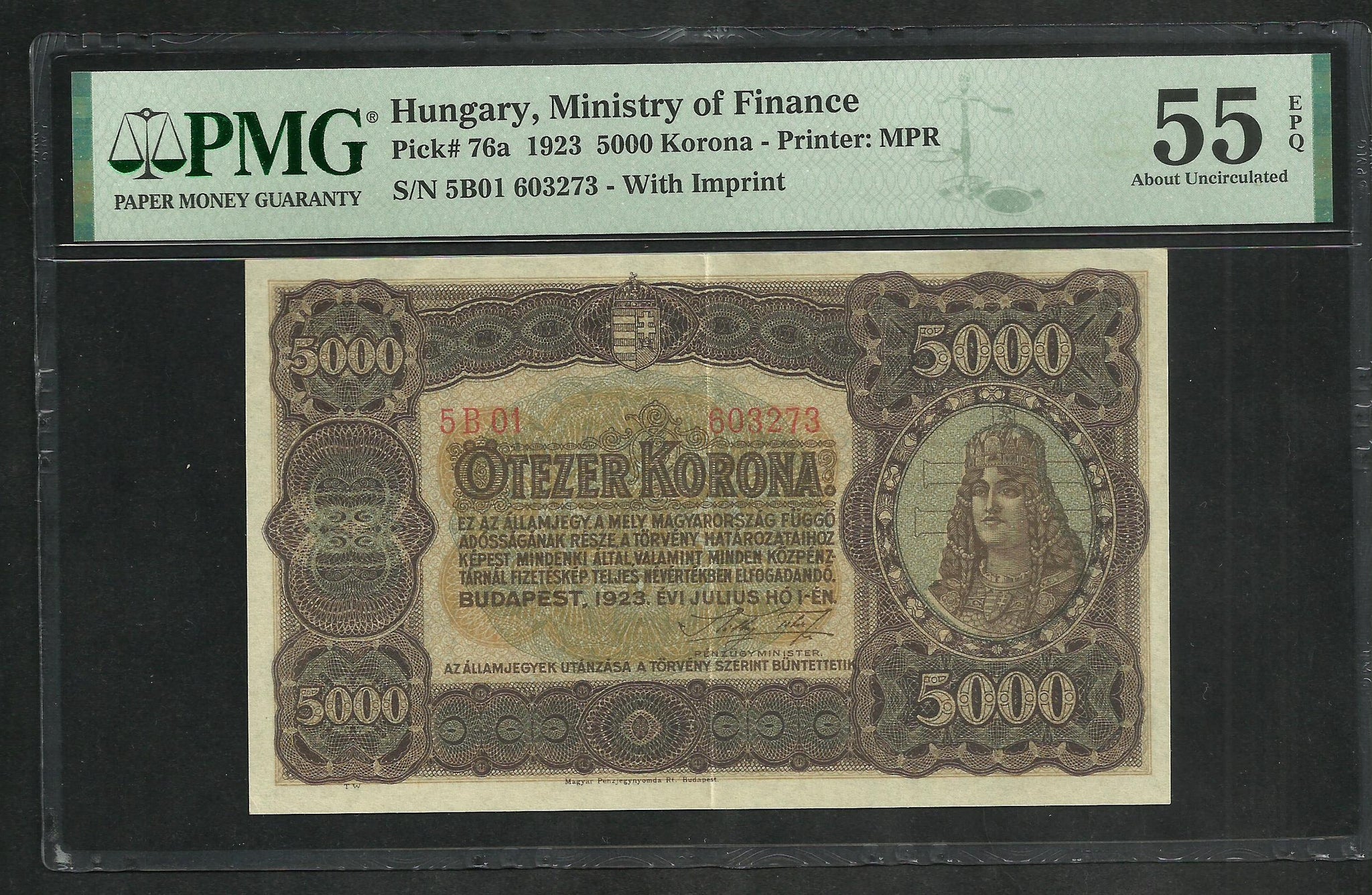 Hungary : 5000 Korona 1923 ; PMG : About UNC 55 ; EPQ (Ref 1882)