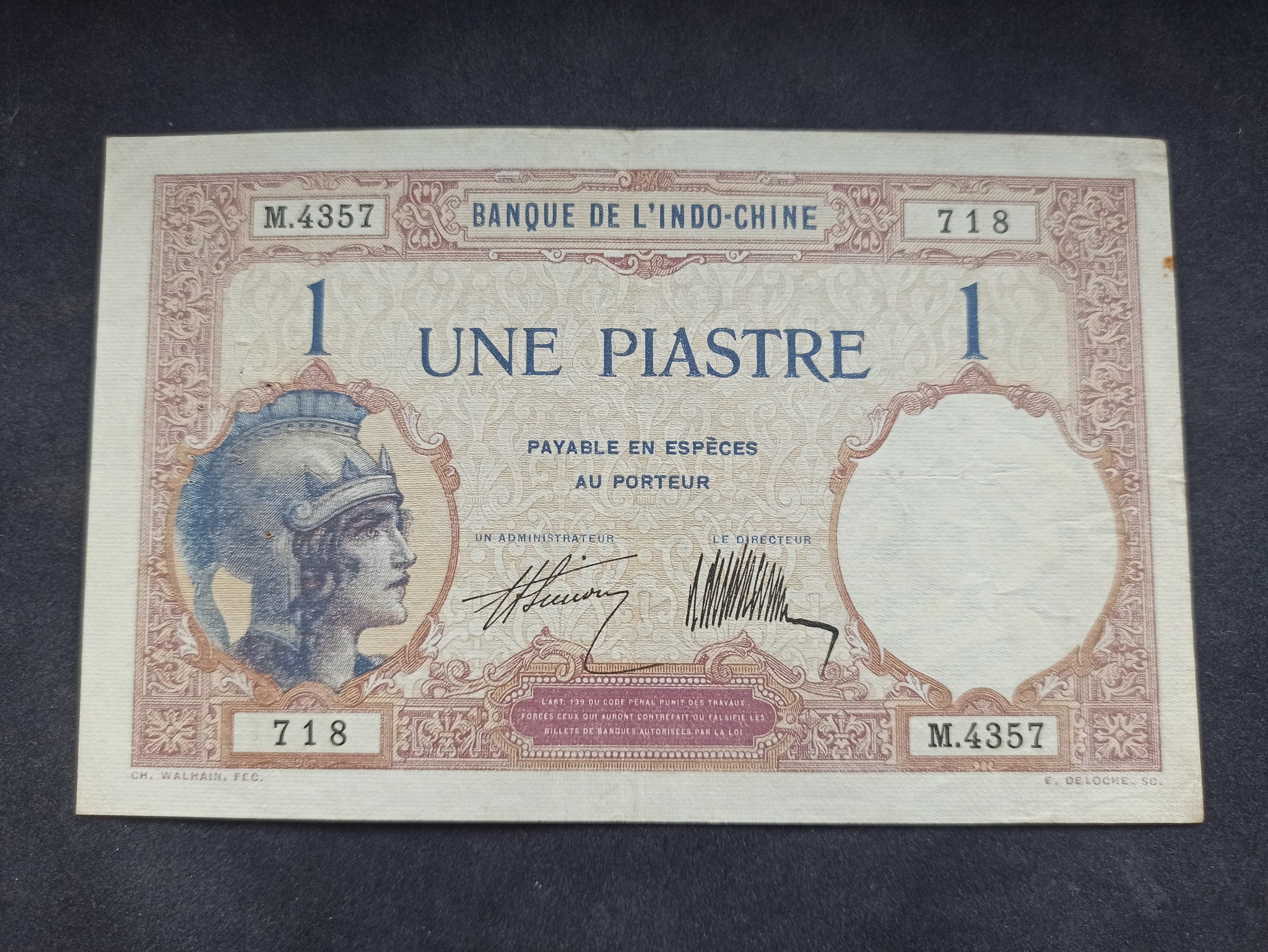 Indochine : Une Piastre 1921 (1927-31) Sign 7 (Ref 2696)
