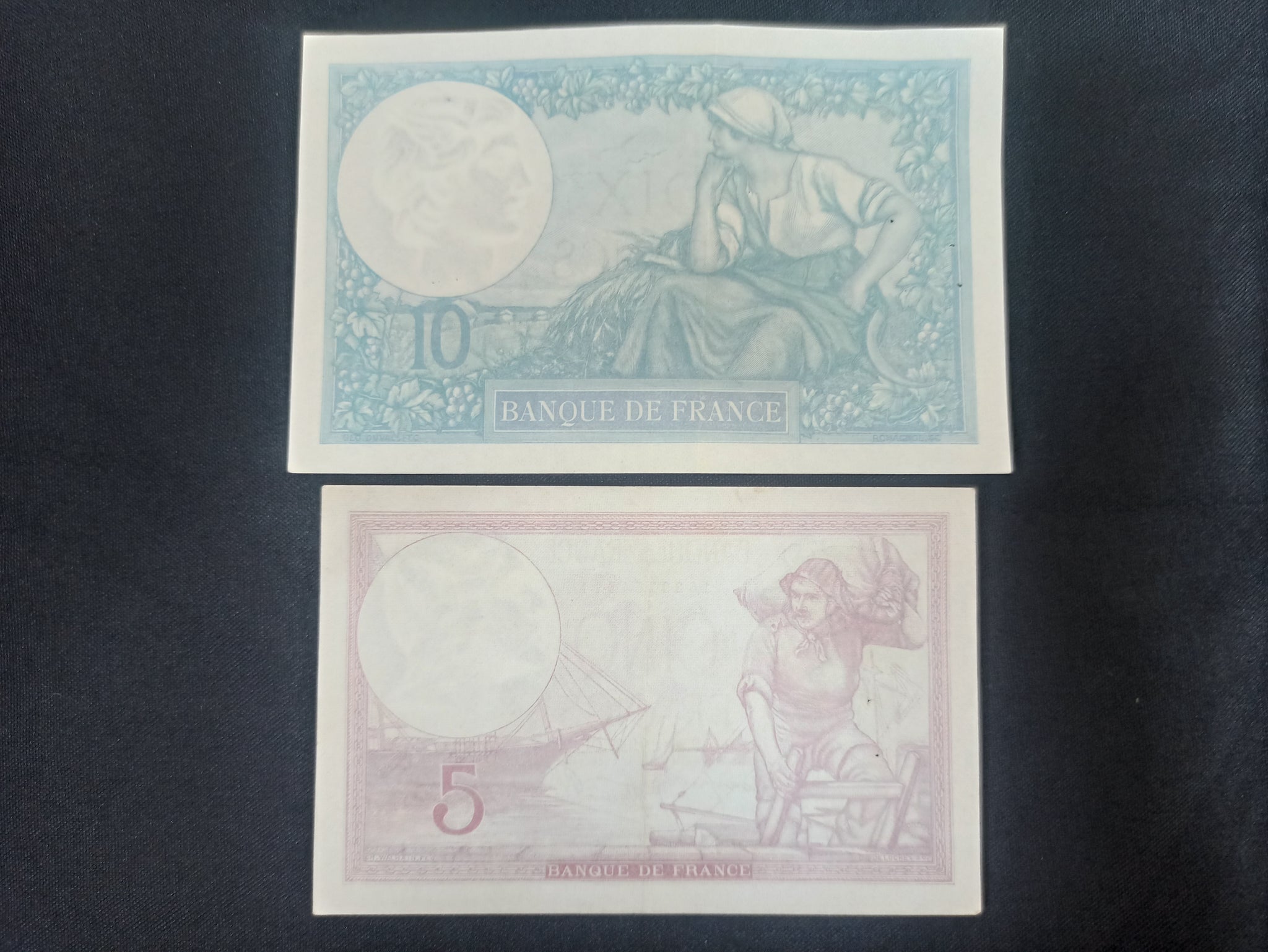 Lot 2 Billets : 10 Francs Minerve & 5 Francs Violet Superbe Qualité