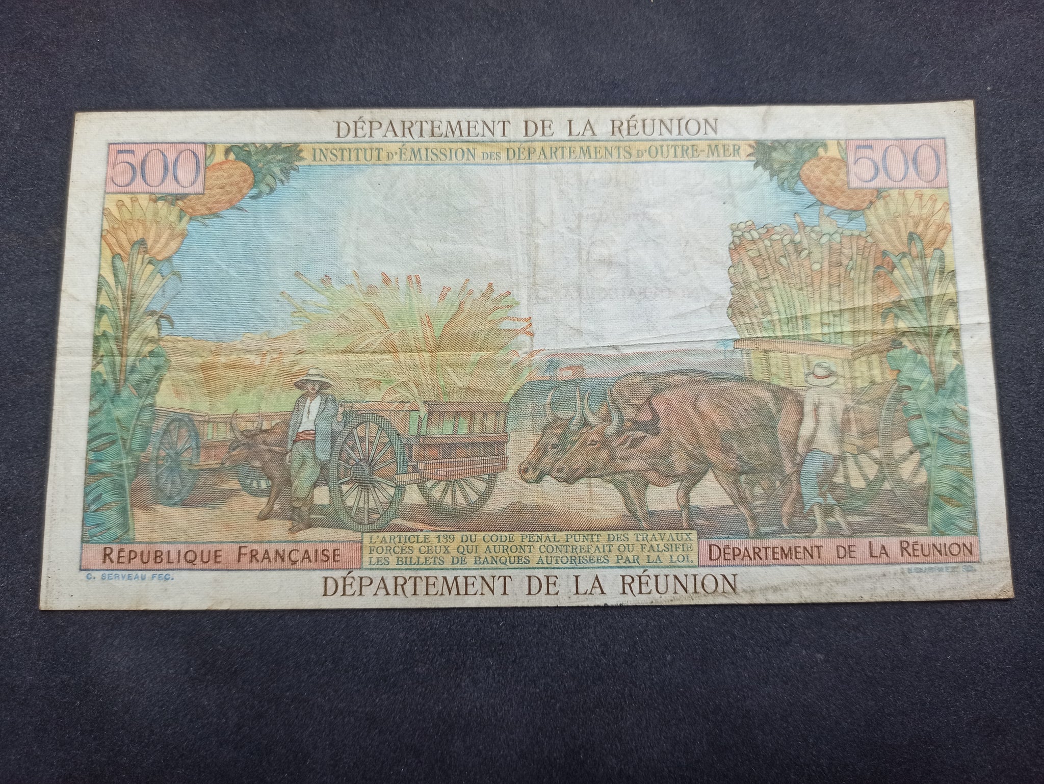 Réunion : 500 Francs Surchargé 10 NF 1971 (Ref 1808)