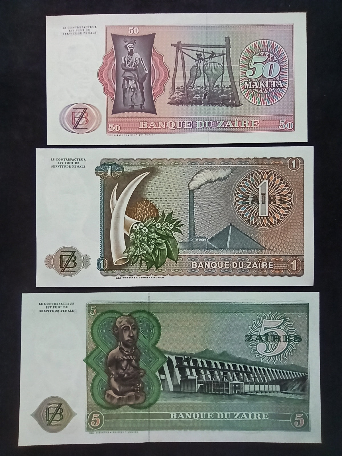 Zaïre : Lot 50 Makuta / 1 et 5 Zaires 1977 NEUF (Ref 2399)
