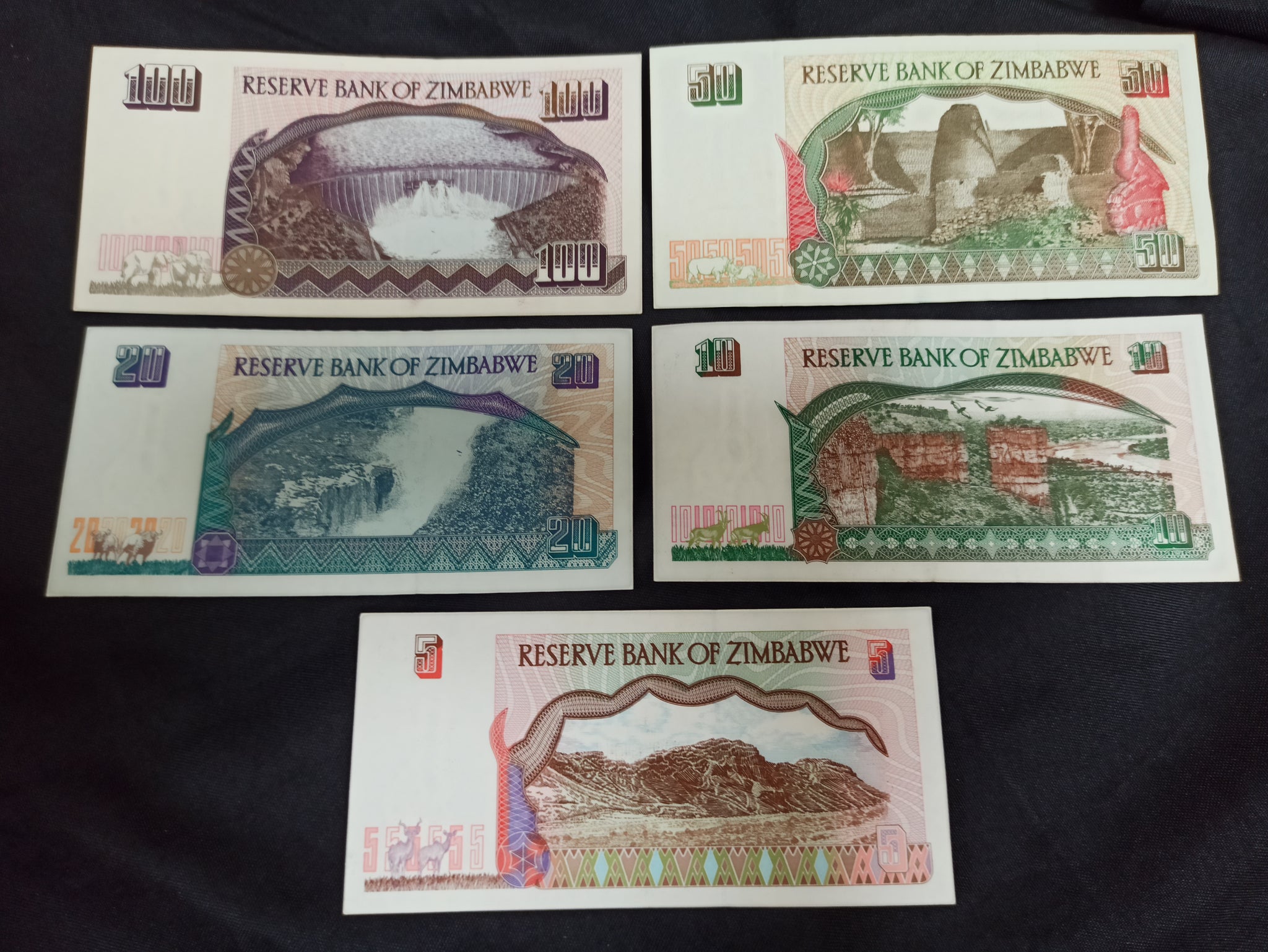 Zimbabwe : Série 5 à 100 Dollars 1995 / 1997 pNEUF (Ref 1234)